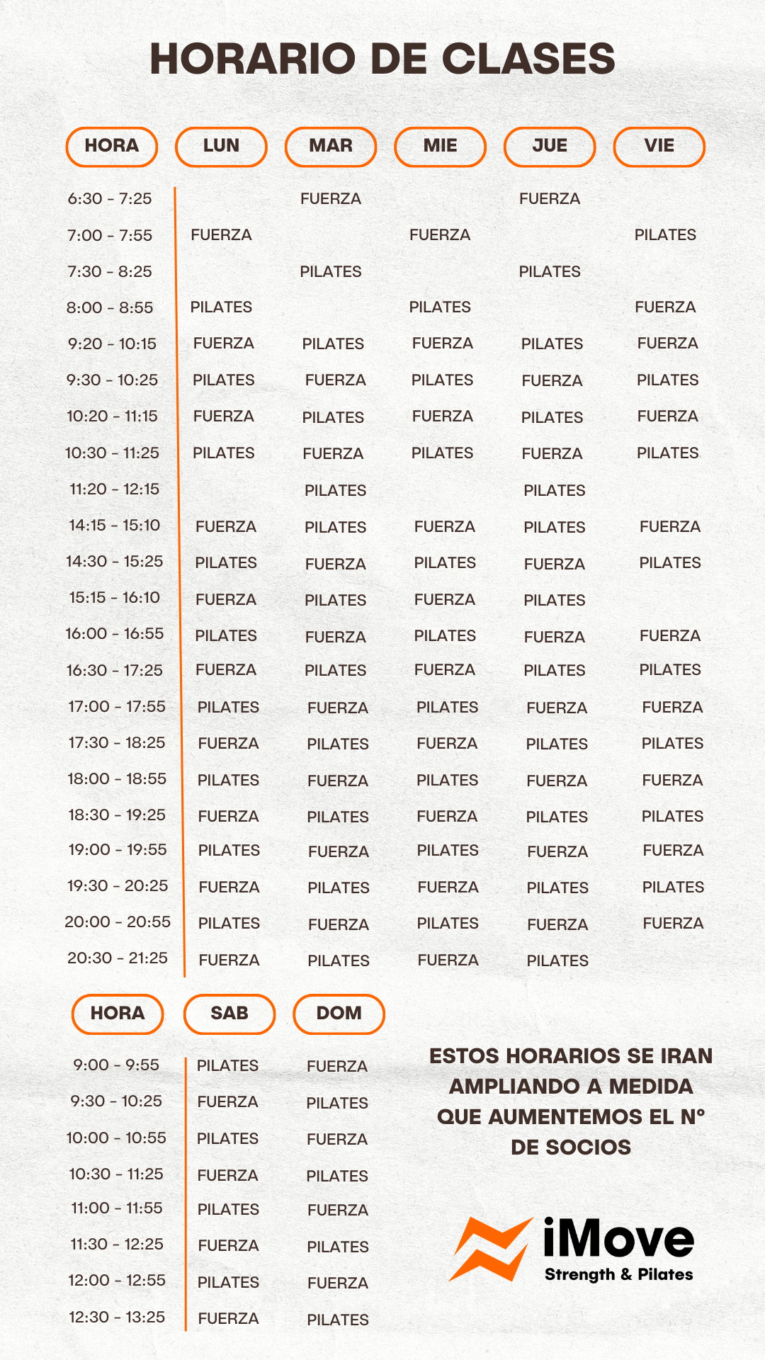 Tienes clases disponibles desde las 7:00 de la mañana hasta las 21:30 de la noche para que puedas asistir en cualquier horario. También abrimos sábados, domingos y festivos.